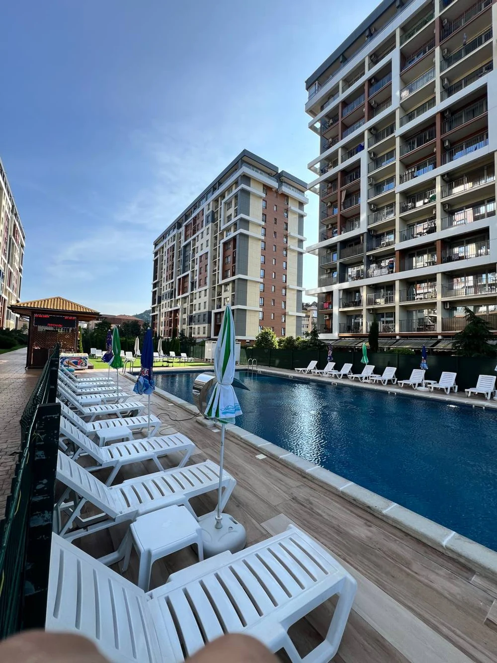 Наши апартаменты могут похвастаться всеми удобствами, необходимыми для комфортного и спокойного отдыха. Наслаждайтесь кроватью размера "king-size" для максимального комфорта, кондиционером, чтобы держать вас в прохладе в жаркие дни, и полностью оборудованной кухней для всех ваших потребностей в приготовлении пищи. Кроме того, насладитесь захватывающим видом на море и внутренний двор прямо из своей комнаты. Наши номера удобно расположены на высоком этаже с лифтом, а пляж находится всего в 3 минутах ходьбы. Вы также найдете множество вариантов питания и развлечений поблизости, с многочисленными кафе и ресторанами на выбор. Для тех, кто любит природу, наши апартаменты окружены потрясающими горами и водопадами, предлагая захватывающие дух виды и приключения на свежем воздухе. А если вы хотите оставаться активным, у нас есть фитнес-центр, сауна и хаммам поблизости. Наши апартаменты расположены на закрытой территории для дополнительной безопасности и конфиденциальности, и мы также предлагаем бассейн для гостей за дополнительную плату. Независимо от того, путешествуете ли вы в одиночку, с партнером или с группой друзей или семьей, у нас есть варианты размещения любого количества гостей. Так зачем ждать? Забронируйте проживание у нас сегодня и испытайте идеальный пляжный отдых на берегу моря Сочи.